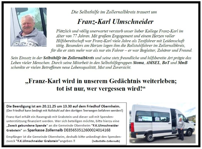 Für Angehörige und Freunde können Selbsthilfegruppen sehr hilfreich sein. Denn nicht nur der Betroffene leidet unter einer Situation, sondern die engsten Familienmitglieder insbesondere den Partnern.